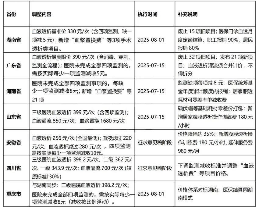 2025年7月,全國(guó)透析醫(yī)療服務(wù)價(jià)格改革進(jìn)入密集落地期。